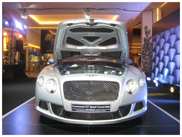 ? Exhilarating supercar performance from uprated 625 PS (616 bhp) W12 engine and eight-speed transmission ? Muscular lines and sporting, contemporary hand-crafted luxury ? An engaging, sensory driving experience with coupe-like refinement ? Enhanced W12 efficiency with a 15% improvement in driving range, fuel economy and emissions ? Global debut at Detroit Auto Show, January 2013 AAS Auto Service Co., Ltd. The Sole Authorized Importer and Distributor of Bentley Cars in Thailand, launches Bentley New Performance Flagship Convertible - The Continental GT Speed Convertible in Thailand at Hall of Mirrors, Siam Paragon. The Continental GT Speed Convertible, Bentley's new open-top performance flagship - and the world's fastest four-seat convertible - makes its international debut on January at the North American International Auto Show, Detroit. The new GT Speed Convertible combines the sensory pleasures of roof-down luxury touring with the shattering performance of a 625 PS (616 bhp) twin-turbocharged 6.0 litre W12, while delivering a fifteen per cent improvement in fuel efficiency. The close-ratio eight-speed transmission, uprated and lowered suspension and retuned steering provide exhilarating acceleration and sharp, communicative handling without detriment to the renowned ride comfort of Bentley's Continental convertible. Permanent all-wheel drive ensures optimum traction and power delivery whatever the road conditions. Taking its place at the pinnacle of the Bentley Continental range, the new GT Speed Convertible has a top speed of 202 mph (325 km/h) and in true Bentley style, no compromises have been made in craftsmanship, luxury or refinement to deliver this unrivalled performance. Subtle sporting design cues include exclusive 21-inch alloy wheels, dark-tint grilles and 'rifled' exhaust tail pipes. Inside its handcrafted cabin, the GT Speed convertible features the Mulliner Driving Specification as standard, blending contemporary luxury with a distinctly sporting character. |