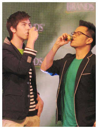 โดยทั้งคู่เป็นผู้ที่ดื่มแบรนดุ์ปไก่สกัดเป็นประจำ