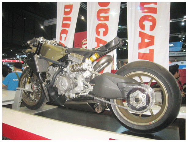 1. Ducati Monster796 ABS Corse Stripe .........The real beginning of the naked bike lifestyle starts here. The perfect new design provided an outstanding look combined with the sports performance of the 803 CC engine with 87 HP resulted in aesthetics and daily riding pleasure. Available at 449,500 Baht. 2. Ducati 899 Panigale .........The revolutionary technology found in the Monocoque frame and Superquadro engine, 148 HP delivered with incredible lightness and unprecedented agility, the unmistakable design, Ducati Quick Shift and ABS fitted as standard. This all ensures that the 899 Panigale is just the bike to give a Ducati Superbike adrenalin rush, both on the track and on the road. This bike is available at an exclusive Motor Expo price of 939,000 from normal price of 999,000 Baht. Additionally, those booking the bike on November 29th 2013 will receive an even more privileged price of 899,000 Baht. 3. Ducati 1199 Superleggera .........The highlight of this event is none other than the stunning 1199 Superleggera, a bike designed with no limits, a machine combining an opulent cocktail of materials such as titanium, magnesium and carbon fiber to set the highest power-to-weight ratio of any production motorcycle in history. Producing more than 200hp and weighing-in at just 155kg, the bike made the record time on Misano racetrack. Only 500 of these are produced worldwide, and only 10 are available in Thailand with the opening price of 4,099,000 Baht. .........Moreover, we are reintroducing the hugely popular Ducati Monster795 for the Model Year of 2014. It is available at 399,990 Baht along with a special Premium Pack (Balloon) offer. Ducati Thailand also have special campaigns for other models such as low 20% down payments on all models, 0% interests for 4 years, and many other privileges. .........In addition to the motorcycle, there are many lifestyle products and merchandises such as apparels, helmets, and various accessories available at the Expo for special prices, to entice the Ducati fans or the Ducatisti |