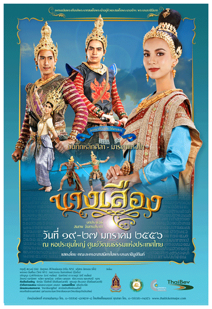 ........ละครเวทีอิงประวัติศาสตร์ เรื่อง นางเสือง จัดขึ้นเพื่อเป็นการสนองพระราชดำริของสมเด็จพระนางเจ้าฯ พระบรมราชินีนาถ ซึ่งทรงมีพระราชประสงค์ในการอนุรักษ์ และสืบสานให้มีการจัดการแสดงละครเวทีอิงประวัติศาสตร์ เพื่อให้ประชาชนทั่วไปได้มีโอกาสรับชมการแสดงที่มีคุณค่าทางประวัติศาสตร์ เรื่องราวของ "นางเสือง" ราชินีองค์แรกแห่งอาณาจักรไทยที่มีพระนามปรากฏในประวัติศาสตร์ จากบันทึกหลักศิลาจารึกพ่อขุนรามคำแหง "พ่อกู ชื่อศรีอินทราทิตย์ แม่กู ชื่อนางเสือง ..." พระราชมารดาของ พ่อขุนบาลเมือง และพ่อขุนรามคำแหงมหาราช ผู้อยู่เบื้องหลังในการกอบกู้อาณาจักรสุโขทัยให้พ้นจากการรุกรานของขอม ถ่ายทอดผ่านการแสดงละคร เวทีอิงประวัติศาสตร์ครั้งยิ่งใหญ่ จากบทประพันธ์ของ อาจารย์สมภพ จันทรประภา กำกับการแสดงโดย หม่อมหลวง จุลลา งอนรถ แสดงโดยนักแสดงคุณภาพภายใต้ชื่อคณะละครอาสาสมัครในพระบรมราชินูปถัมภ์ อาทิ ทฤษฎี สหวงษ์(ปอ), อัษฎาพร สิริวัฒน์ธนกุล(กรีนAF5), นภัสกร มิตรเอม(ตั๊ก), พชรพล จั่นเที่ยง(วิทย์), กนกวรรณ อินทรพัฒน์(อุ๊บอิ๊บ), ลักษณ์ เรขานิเทศ, อภิญญา รุ่งพิทักษ์มานะ (อาร์ คนโขน), นันทรัตน์ ชาวราษฏร์ (ตรี คนโขน), พลิตา พุทธรัสสุ, อาภัสรา นกออก, พัชรวรรณ หุตะเศรณี ฯลฯ ร่วมด้วย นักแสดงรับเชิญ ๒ ศิลปินแห่งชาติ พิศมัย วิไลศักดิ์ - เศรษฐา ศิระฉายา และนักแสดงสมทบจาก วิทยาลัยนาฏศิลป สถาบันบัณฑิตพัฒนศิลป์, คณะศิลปกรรมศาสตร์ จากจุฬาลงกรณ์มหาวิทยาลัย และมหาวิทยาลัยธุรกิจบัณฑิตย์ รวมกว่า ๓๐๐ คน บรรเลง ดนตรีไทยโดย วงดุริยประณีต ตระการตาไปกับความวิจิตรงดงามของนาฏศิลป์ไทยชุดพิเศษ ระบำดอกบัว จากนักแสดงถึง ๘๑ คน และระบำอัปสรฟ้อนไฟ พร้อมขบวนทัพทหารชุดใหญ่ ที่หาชมยากยิ่งในปัจจุบัน |