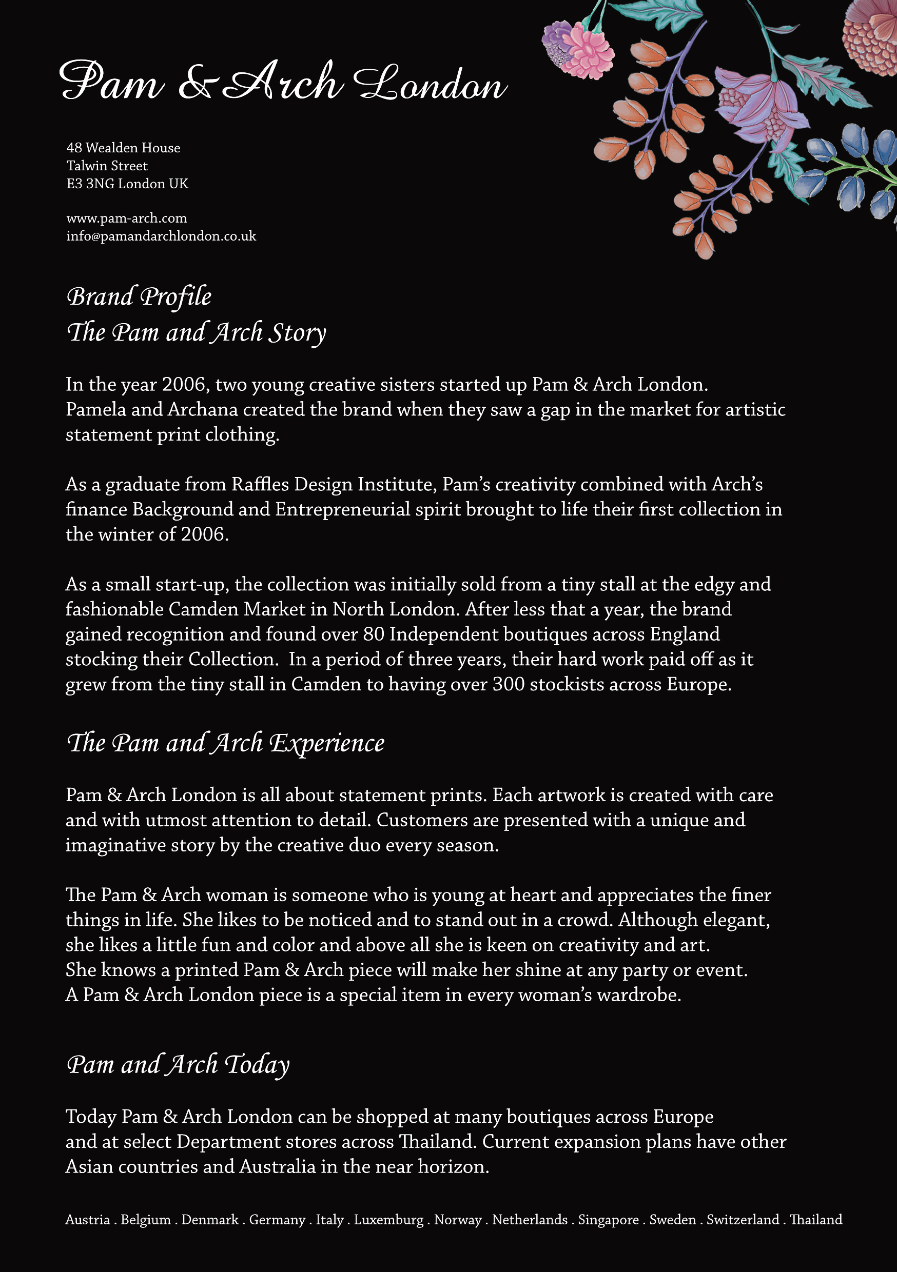 และในเวลาเพียงไม่นาน Pam & Arch London มีจำหน่ายในบูติคเสื้อผ้าชั้นนำกว่า