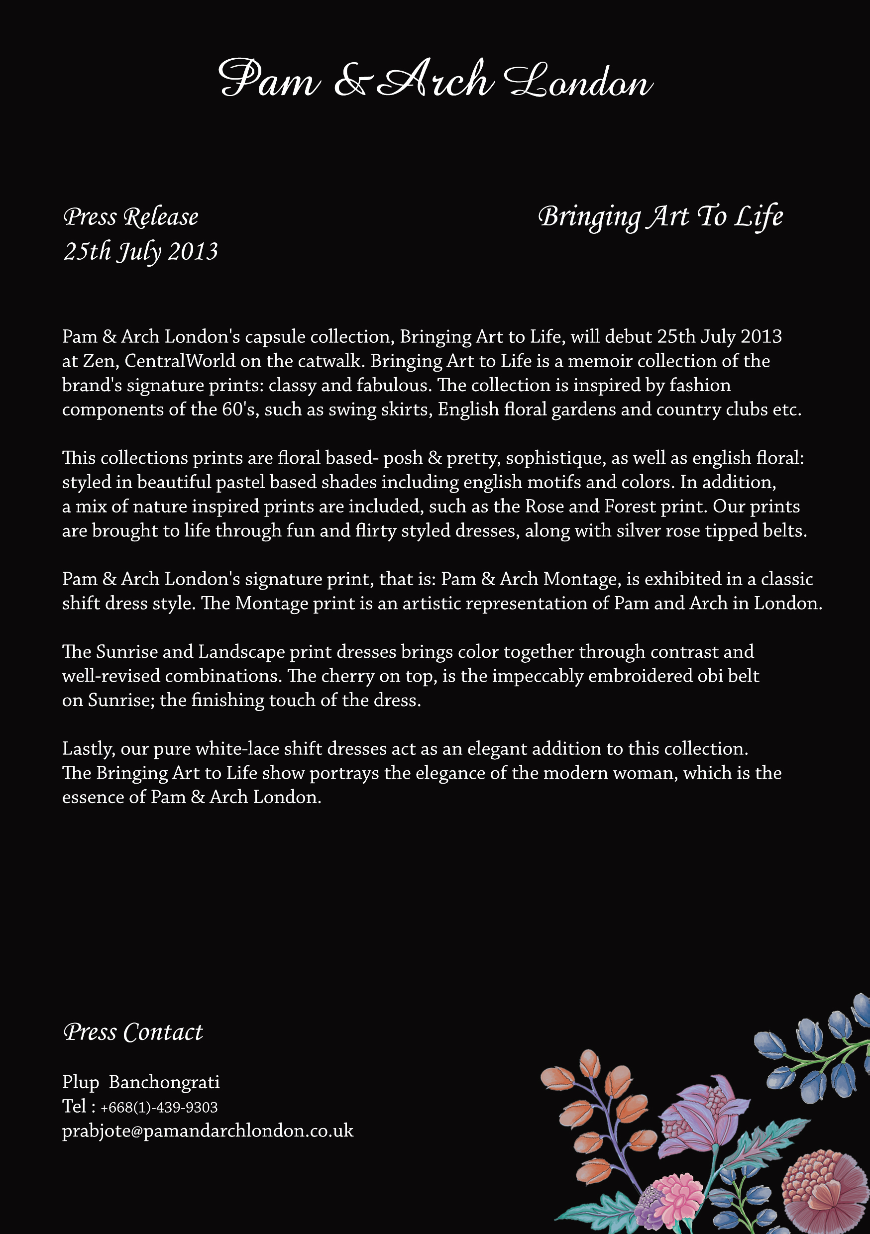 Pam & Arch London ให้เป็นส่วนหนึ่งของลายผ้าในแต่ละคอลเลคชั่นนั้นด้วย