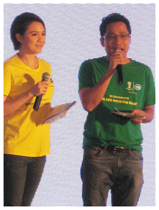| ........ ฟิล์ม เสริมว่า "เป็นการนับถอยหลังเข้าสู่ฟุตบอลโลกปี2014 ซึ่งแซมบ้า บราซิล เป็นชาติเจ้าภาพ เรื่องสีสัน ความสนุก เค้ามีเอกลักษณ์ที่โดดเด่นอยู่แล้ว โดยเฉพาะพิธีเปิดต้องยิ่งใหญ่ ตระการตาแน่นอน คอบอลทั้งหลายพลาดไม่ได้ และยังมีกิจกรรมบันเทิง มอบโชค ให้คอบอลได้ร่วมสนุก ติดตามชมได้ทาง World cup Channel (เวิลด์ คัพ แชนแนล) และ ฟรีทีวี ช่อง 7, ช่อง 8 ,ช่อง 11 รับชมได้ทั้งแบบปกติ และในแบบ HD ซึ่งจะเป็นการส่งสัญญาณภาพความละเอียดสูง รับรองว่าการชมภาพและเสียงของฟุตบอลจะคมชัดเป็นพิเศษ ที่สำคัญอยากให้ดูฟุตบอลเป็นกีฬาเพื่อความบันเทิง อย่าเอาเรื่องการพนันเข้ามาเกี่ยวข้องครับ" | |