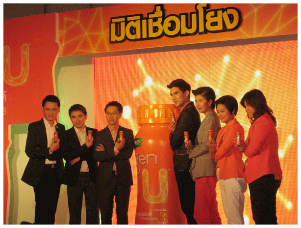 ........บริษัทฯ ได้จัดสรรงบประมาณทางการตลาดไว้ที่ 80 ล้านบาท สำหรับเปิดตัวสินค้าใหม่ในแคมเปญ "แบรนด์ เจนยู จินเซนโนไซด์ เจนโปร...มิติเชื่อมโยง" พร้อมกับผลิตภาพยนตร์โฆษณาชื่อชุด "โจทย์" ซึ่งมี เต๋อ-ฉันทวิชช์ ธนะเสวี เป็นผู้ถ่ายทอดเรื่องราวความสำคัญของ "ความเชื่อมโยง" ซึ่งเป็นเคล็ดลับสำคัญที่ทำให้หนังหลายๆ เรื่องที่เต๋อ-ฉันทวิชช์ เขียนบทประสบความสำเร็จมาเป็นคอนเซ็ปต์ในภาพยนตร์โฆษณาชุดนี้ โดยมีเนื้อหาเกี่ยวกับการทำงาน การสร้างตัวละคร ทุกคาแรกเตอร์ มีเบื้องหลังความสำเร็จของตัวละครต่างๆ ในทุกฉากทุกตอน มาจากแนวคิดเชื่อมโยงของข้อมูล และวิเคราะห์ข้อมูลต่างๆ เข้าด้วยกัน จนเกิดเป็นแนวคิด ไอเดียใหม่ๆ ........"สำหรับ"แบรนด์ เจนยู จินเซนโนไซด์ เจนโปร" เราทำกิจกรรมการตลาดในการสร้างมิติใหม่ของการเชื่อมโยง เราต้องบอกว่าการตลาดในครั้งนี้เพื่อที่จะเชื่อมโยงถึงกลุ่มเป้าหมายในทุกๆ Lifestyle ไม่ว่าจะเป็นสื่อ Off Line และ Online ในทุกๆช่องทางไม่ว่าจะเป็น ทีวี วิทยุ Out of Home, สื่อสิ่งพิมพ์ และ In store มากไปกว่านั้น เรามั่นใจในรสชาติเพื่อให้ผู้บริโภคได้มีประสบการณ์เชื่อมโยงกับทีม Connectivity ที่จะไปยังกลุ่มเป้าหมายกับ 12 ย่าน office ทั่วกรุงเทพ ซึ่งเราเชื่อว่า "แบรนด์ เจนยู จินเซนโนไซด์ เจนโปร" จะได้รับการตอบรับที่ดีจากผู้บริโภคในเวลาอันรวดเร็ว และตอบโจทย์ได้อย่างแน่นอน" นายตุลย์กล่าวในท้ายสุด |
