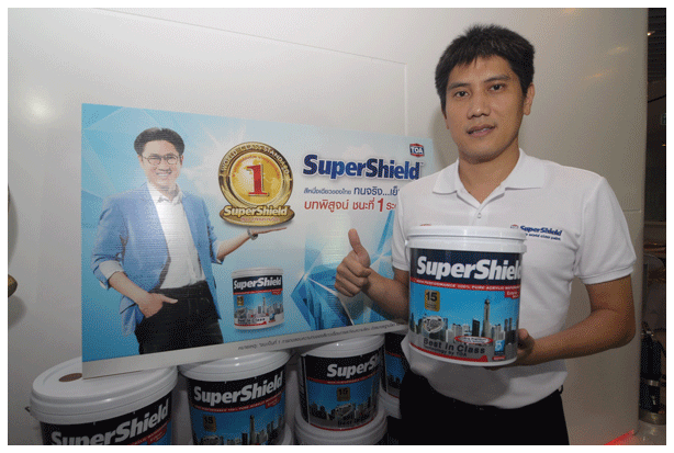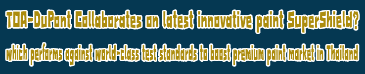 "In 2012, the total architectural paint market was about 19 billion Thai Baht. TOA has the total market share of 48% of which 23% is premium and ultra-premium, 31% is medium and 20% is economy segment. Within the first 3 quarters this year, the market growth is believed to be about 3-5% while TOA sales revenue has increased around 6-7%. Therefore, we are confident that we can maintain the 48% market share from the total market value of 20 billion THB in 2013," said Pongcherd. TOA paint is the first 100% acrylic paint in Thailand without mercury and lead and is the only paint manufacturer which offers 15-year warranty. SuperShield? is the best paint from TOA will save you three-fold . Your house will be beautiful for 15 years with this durable paint . No labor cost from repaint Save the environment. From real application more than 30 years and proven by several leading construction more than 80% in Thailand. |