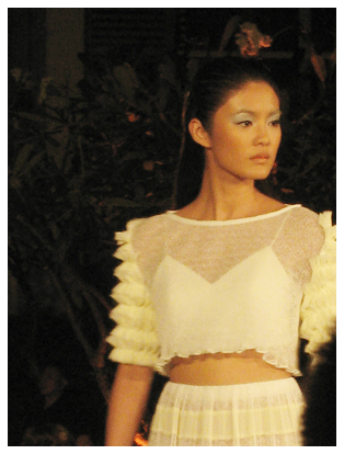ต่อด้วยนางแบบนักเทนนิสสาวชาวจีน หลี่ นา ปรากฏกายด้วยชุดผ้าไหมสีน้ำเงินเข้ม