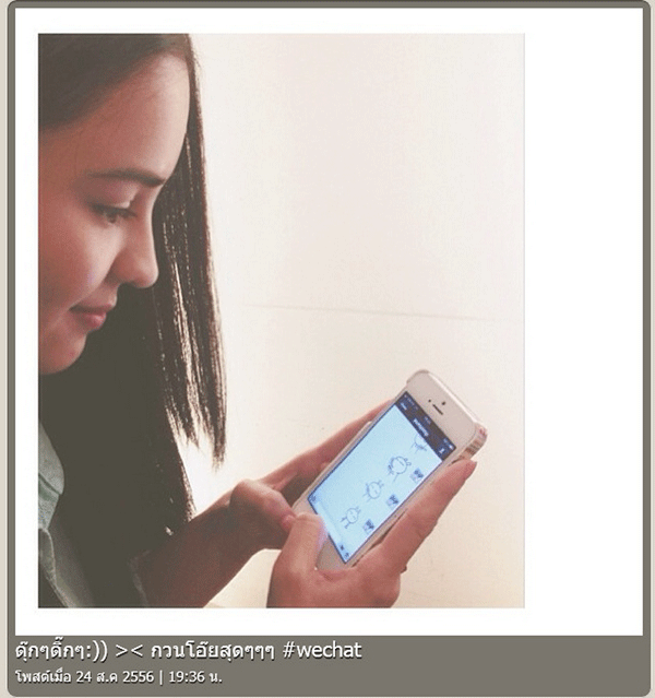 แต่แม้จะไกลบ้านไกลเมืองแบบนั้น สาวออมก็ไม่มีเหงาเพราะมี WeChat เป็นตัวช่วยให้แช๊ตกับแก๊งค์พื่อนและแฟนคลับได้สบายๆคลายความคิดถึงบ้าน