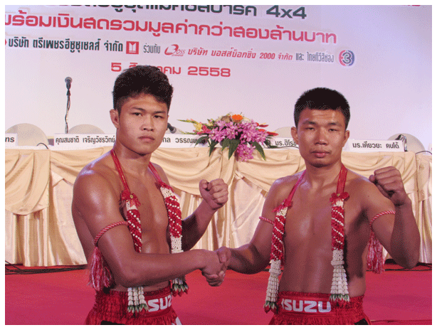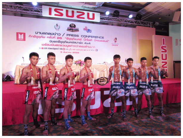 | ........."อีซูซุตอกย้ำจุดยืนที่จะอนุรักษ์ไว้ซึ่งศิลปะการป้องกันตัวอันเป็นเอกลักษณ์ที่ล้ำค่าของชาติไทย ด้วยการจัดศึก อีซูซุคัพ ศึกมวยไทยระดับตำนานที่ประสบความสำเร็จอย่างยิ่งใหญ่และยาวนานมากว่า 25 ปี สร้างนักชกฝีมือฉกาจประดับวงการมวยไทยมาอย่างต่อเนื่อง" "การแข่งขันมวยไทย อีซูซุคัพ ครั้งที่ 26 ศึกอีซูซุดีแมคซ์ บิ๊กไฟต์ บิ๊กแชลเลนจ์ จะเป็นการรวมสุดยอดนักมวยไทยดาวเด่นจากทั่วประเทศที่การันตีโดยโปรโมเตอร์ชื่อดังมาร่วมประชันฝีมือกันแบบเต็มพิกัด" นอกจากการแข่งขันแล้ว อีซูซุยังได้จัดกิจกรรมให้แฟนมวยร่วมส่งบัตรทายผล "แชมป์มวย" ใน "ศึกอีซูซุดีแมคซ์ บิ๊กไฟต์ บิ๊กแชลเลนจ์" ลุ้นรางวัลสร้อยคอทองคำแท้มูลค่านับแสนบาท โดยสามารถติดต่อขอรับและส่งแบบฟอร์มการทายผลได้ที่โชว์รูมอีซูซุทั่วประเทศ หรือ เขียนชื่อ-ที่อยู่ พร้อมคำทายผลลงในไปรษณียบัตร ส่งมาที่ ฝ่ายสื่อสารการตลาด บริษัท ตรีเพชรอีซูซุเซลส์ จำกัด 1088 ถนนวิภาวดีรังสิต แขวงจตุจักร กรุงเทพฯ 10900 โดยวงเล็บมุมซองว่า "ศึกอีซูซุคัพ ครั้งที่ 26" หมดเขตรับบัตรทายผลในวันที่ 29 กุมภาพันธ์ 2559 ทั้งนี้ แฟนมวยสามารถรับชมการแข่งขันศึกอีซูซุคัพ ครั้งที่ 26 "ศึกอีซูซุดีแมคซ์ บิ๊กไฟต์ บิ๊กแชลเลนจ์" ได้ที่เวทีมวยสยาม (อ้อมน้อย) หรือชมการถ่ายทอดสดทางสถานีโทรทัศน์ไทยทีวีสี ช่อง 3 ทุกวันเสาร์ ตั้งแต่เวลา 12.15 น. ขณะที่ศึกนัดแรกจะเป็นการพบกันระหว่าง อุ้ยเสี่ยวป้อ ซูจี่บะหมี่เกี๊ยว ฝ่ายแดง พบกับ ดีเซลเล็ก แป๋งกองปราบ ฝ่ายน้ำเงิน ในวันเสาร์ที่ 15 สิงหาคมนี้ | |