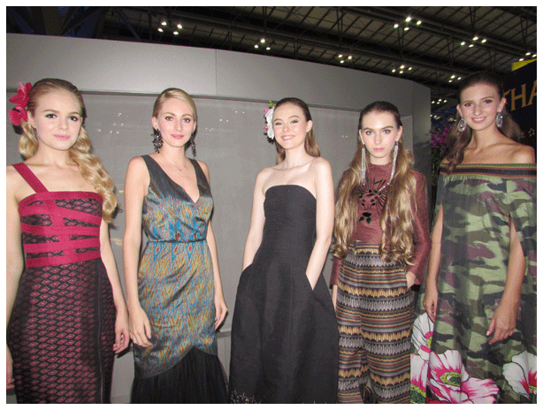 consists of 4 sets, The Beauty of Thai Tradition. The traditional costumes and antique Thai fabric are presented in this session and they are magnificent graceful, indicating obviously the uniqueness of Thailand. This collection is graced by Spouses of ambassadors from the Ministry of Foreign Affairs led by Mrs.Siriporn Panupong, wife of the National Reform Council's Member and Former Ambassador of Thailand to Canada, Ms.Pannabha Chandraramya, Deputy Director-General of the Department of European Affairs, Mrs.Rattanaprapa Disavatana, wife of the Deputy Permanent Secretary of the Ministry of Foreign Affairs of Thailand, Dr.Vilaiwan Chantasen, Wife of Former Ambassador of Thailand to Kuwait, Mrs.Mokkara Anamarn, Wife of Former Ambassador of Thailand to Denmark, Mrs.Chadanisa Chumnanvej, Senior Specialist 10 AOT and acting Vice President Customer Service Department and Mrs.Pattareeya Winitnaiyapak, Wife of the Attorney General of Thailand, The Thainess Welcome ........The show presents Thailand intellectual in fabrics and design by various kinds of fabric such as Prae-wa silk, Woven silk, Indigo dyed woven fabric, Satin, Brocade, are designed to create a modern fashion, in order to add value and gain appreciations from international fashion societies, this set is presented by the Staff of Tourism Authority Of Thailand, AOTand Thai Airways International The Wonder of Modern Thai Silk....... |