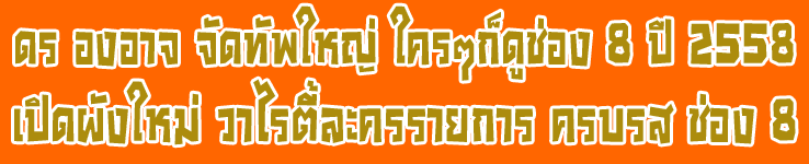 ดร องอาจ จัดทัพใหญ่ ใครๆก็ดูช่อง 8 ปี 2558 เปิดผังใหม่ วาไรตี้ละครรายการ ครบรส ช่อง 8 |
