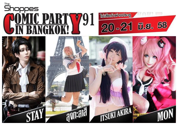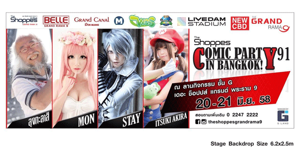 20(SAT)/JUNE/2015 10:00 OPEN 13:00 Stage Start, MC greeting 13:10 Foreign Guest on the stage 13:20 Photo session of foreign guest 13:30 ITSUKI AKIRA Anison Mini Live! 14:00 Sign & Handshake & photo session of foreign guest with visitor (on the stage) 14:30 WKG Thai Round Semi final 16:00 All cosplayer photo session in front of Shoppes(with Guest) 16:30 Sign & Handshake & photo session of foreign guest with visitor 17:30 CLOSE 21(SUN)/JUNE/2015 10:00 OPEN 13:00 Stage Start, MC greeting 13:10 Foreign Guest on the stage 13:20 Photo session of foreign guest 13:30 ITSUKI AKIRA Anison Mini Live! 14:00 Sign & Handshake & photo session of foreign guest with visitor (at the booth) 14:00 WCS Thai Round (on the stage) 16:00 WKG Thai Round final (on the stage) 17:30 Reselt announce of WCS & WKG Thai Round 18:00 CLOSE |
