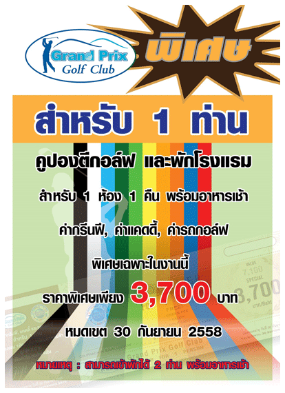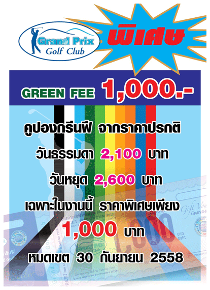 สำหรับ 2 ท่าน เพียง 5,400 บาท นักกอล์ฟหรือท่านที่สนใจสามารถเยี่ยมชมบูธของสนามกรังด์ปรีซ์