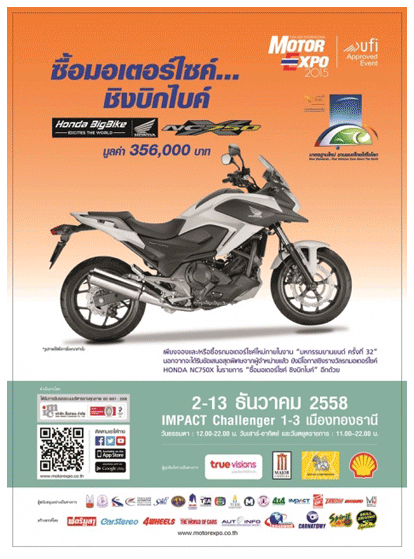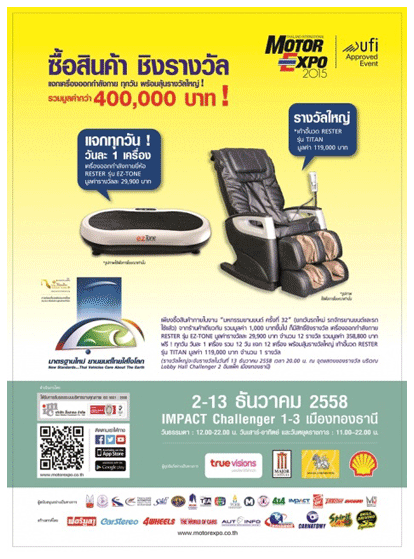 5 ในวันอาทิตย์ที่ 6 ธันวาคม 2558 ตั้งแต่เวลา 14.00 - 16.00 น. ติดตามรายละเอียดเพิ่มเติมได้ที่http://www.motorexpo.co.th