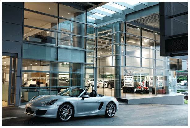 a showroom space designed to display 10 Porsche cars, a dedicated Porsche