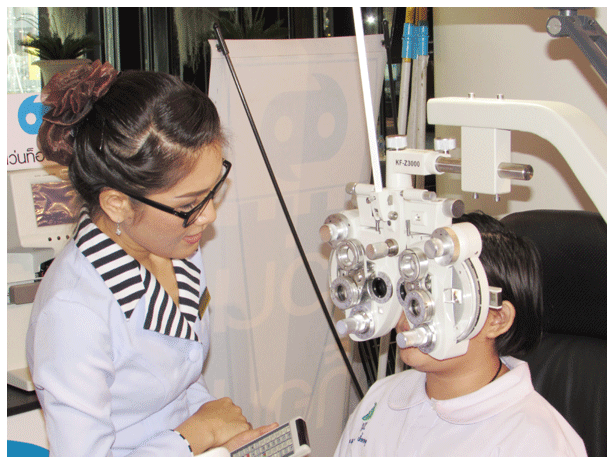 continued Mr. Noppasak. ........On implementation, the Spectacles for Children Project are going to have a mobile unit in which at least 500 children aged 8 to 18 years old can have their eyes tested with up to date medical science and advanced tools. This mobile unit will go to every province in Thailand on a monthly basis. The set target of this campaign, which runs from 2014 to 2018, is about 20,000 children or more. Those with eye-related symptoms will get eyeglasses made by experts to correct their eyesight while children with severe visual problems will be taken to 'Top Charoen Eye Center' for further treatments without any charge. |
