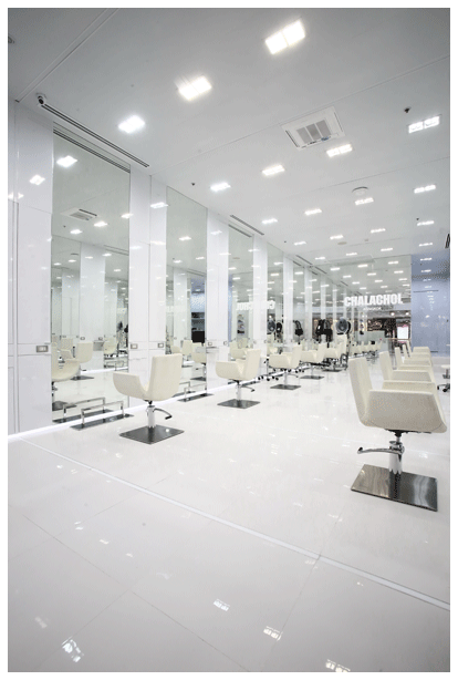 ........ที่มาพร้อมกับคอนเซปต์ "INFINITE INNOVATION" รวมถึงการตกแต่งที่แตกต่างออกไปจากสาขาอื่น ใช้ความเป็น Digital Salon เพื่อตอบโจทย์ไลฟ์สไตล์ของกลุ่มลูกค้าและความสะดวกที่เพิ่มมากขึ้นกว่าเดิม จุดเด่นของ CHALACHOL BANGKOK สาขา เซ็นทรัลพลาซา เวสต์เกต นั้นอยู่ที่คุณภาพของวัสดุการตกแต่งในแต่ละชิ้นที่ถูกออกแบบอย่างเรียบหรู แต่ดูลงตัว โดยเริ่มจากเพดานนั้น ใช้แผ่นอลูมิเนียมคอมโพสิท (Aluminium Composite Material) ที่มีความสวยงามและทนทาน ซึ่งปกติจะพบในการตกแต่งภายนอกเท่านั้น ครั้งนี้อาจเป็นครั้งแรกก็ว่าได้ที่ได้เห็น อลูมิเนียมชนิดนี้ถูกใช้เข้ามาตกแต่งเป็นเพดานภายในร้านซาลอน ตัวผนัง พื้น และเพดาน สะท้อนแสงให้มีลักษณะเป็นเส้นตรง ทั้งแนวตั้งและแนวนอน ช่วยให้มีการกระจายแสงโปร่ง ทำให้พื้นที่ภายในร้านดูกว้างขวางและโอ่โถงมากขึ้น ในส่วนระบบภายในเพิ่มความเป็น Digital Salon เพื่อรองรับความสะดวกสบายได้มากยิ่งขึ้น ด้วยโปรแกรมที่มีชื่อว่า CH 4 โปรแกรมที่ถูกสร้างขึ้นมา เพื่อเชื่อมโยงความสัมพันธ์ระหว่างช่างทำผมกับลูกค้า ตอบโจทย์ให้เข้ากับไลฟ์สไตล์ของกลุ่มลูกค้าในยุคปัจจุบัน ซึ่งจะทำหน้าที่บันทึกรายละเอียดต่างๆ ของลูกค้าเมื่อเข้ามารับบริการ ไม่ว่าในเรื่องของการใช้สิทธิ์ของสมาชิก หรือการรับบริการตั้งแต่ครั้งแรกจนถึงครั้งล่าสุดทำให้ช่างสามารถวิเคราะห์เรียงลำดับถึงขั้นตอนการให้บริการได้อย่างแม่นยำ ถือว่าเป็นจุดเด่นที่สำคัญอีกอย่างของCHALACHOL BANGKOK สาขาเซ็นทรัลพลาซา เวสต์เกต |