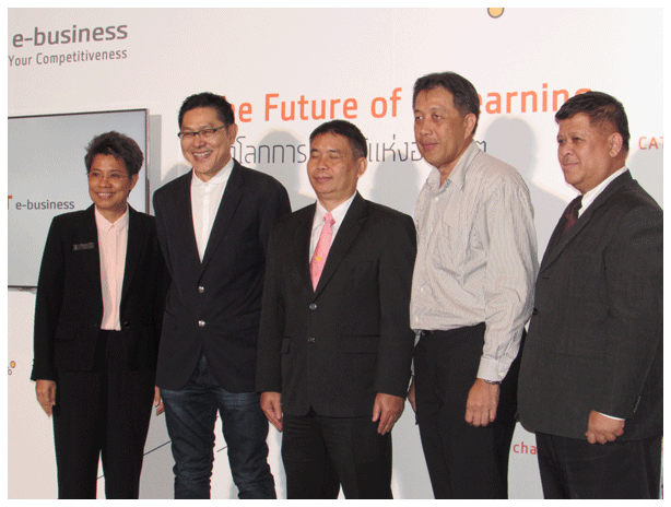 ดร.วิชัย ดีเจริญกุล ผู้ช่วยกรรมการผู้จัดการใหญ่ กลุ่มบริการลูกค้าขายส่งและเอกชน สายงานการตลาด และการขาย บริษัท กสท โทรคมนาคม จำกัด (มหาชน) หรือ CAT กล่าวว่า "เพื่อให้องค์กรภาครัฐและ เอกชนทุกขนาด ที่ต้องการนำเอาระบบ ICT เข้าไปใช้ในองค์กรเพื่อขับเคลื่อนธุรกิจให้มีประสิทธิภาพลดความยุ่งยาก ซับซ้อน ประหยัดเวลา ลดต้นทุนและเพิ่มความปลอดภัยด้วยระบบที่มีมาตรฐานจาก CAT ซึ่ง e-Learning Solutions จะเน้นการให้บริการในรูปแบบศูนย์การเรียนรู้ครบวงจรผ่านระบบออนไลน์ตลอด 24 ชั่วโมง โดย e-Learning Solutions เหมาะสำหรับองค์กรที่ต้องการพัฒนาศักยภาพบุคลากรด้านองค์ความรู้ ทักษะการทำงาน ฝึกอบรมต่างๆ หรืออาจกล่าวได้ว่าเป็นโซลูชั่นสำหรับการเรียนการสอนออนไลน์ที่ช่วยให้ การฝึกอบรมในหน่วยงานหรือองค์กร มีความ สะดวก รวดเร็ว ทันสมัย และมีความปลอดภัยสูง ที่สามารถตอบสนอง ความต้องการการเรียนรู้ทั้งผู้เรียน และ ผู้สอนได้อย่างมีประสิทธิภาพ อีกทั้งสามารถสื่อสารโต้ตอบกันได้ทุกที่ ทุกเวลา ผ่านหลากหลายช่องทางที่ CAT มีให้ บริการ ซึ่งเสมือนเป็นสื่อการเรียนการสอนระยะไกลที่ช่วยให้พนักงานในองค์กรประหยัดเวลาในการเดินทาง เพื่อมา อบรมหรือเรียนหลักสูตรต่างๆ สำหรับการทำงาน เพราะอยู่ที่ไหน ก็สามารถสื่อสารถึงกันได้แบบเรียลไทม์ (Realtime) ซึ่งจะช่วยให้องค์กรต่างๆ ทั้งภาครัฐและเอกชนสามารถ ขับเคลื่อนธุรกิจให้มีความคล่องตัวมากขึ้น ลดต้นทุนด้านเวลา การเดินทาง และยังช่วยเพิ่มศักยภาพของบุคลากร ในการร่วมพัฒนาองค์กรไปสู่ความสำเร็จได้ อย่างมีประสิทธิภาพ อันเป็นการยกระดับองค์กรไปสู่ความได้เปรียบ ทางการแข่งในระดับสากล" |