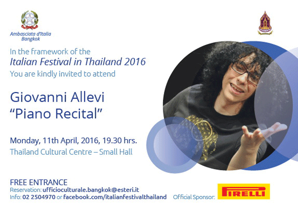 For reservations and info please send an e-mail to: ufficioculturale.bangkok@esteri.it See more at :https://www.facebook.com/ItalianFestivalThailand/ |