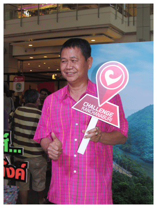 | .......จังหวัดกาญจนบุรี จึงได้ขานรับนโยบายดังกล่าวมามาปฎิบัติ ประกอบกับกาญจนบุรีเองเป็นเมืองท่องเที่ยวเชิงประวัติศาสตร์ มีความพร้อม ในด้านต่าง ๆ ไม่ว่าจะเป็น โรงแรมที่พัก ร้านอาหาร บริการทางด้านสุขภาพ การเดินทางขนส่งที่มีความสะดวกสบาย ทำให้กาญจนบุรีเป็นเมืองที่สามารถรองรับการเป็นเจ้าภาพกิจกรรมใหญ่ๆในระดับโลกได้ ดังนั้น กลยุทธ์ในช่วง 3 เดือน ไตรมาสสุดท้ายของปีนี้ จังหวัดกาญจนบุรี จะนำกิจกรรมการท่องเที่ยวเชิงกีฬามาใช้ในการกระตุ้นเศรษฐกิจในพื้นที่ โดยคาดว่าจะมีนักท่องเที่ยวในจังหวัดกาญจนบุรีเพิ่มขึ้น 30 เปอร์เซนต์ ซึ่งรายได้ของจังหวัดส่วนใหญ่มาจากการท่องเที่ยว สร้างมูลค่าทางเศรษฐกิจจากเดิมในช่วงกลางปีที่ผ่านมา ประมาณ 60,000 ล้านบาท ปัจจุบัน เพิ่มขึ้นจากปีที่แล้วเป็น 65,000 ล้านบาท และคาดว่าจะเติบโตเพิ่มขึ้น 10% ในช่วงปลายปีอย่างแน่นอน และจะส่งผลให้เศรษฐกิจของประเทศเติบโตขึ้นทุกปี ช่วยสร้างมูลค่าสร้างรายได้ให้กับจังหวัดกาญจนบุรีและเป็นฐานให้คนในพื้นที่ เกิดการพัฒนาอย่างยั่งยืน" | |