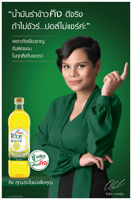 และมีประสบการณ์ในการใช้น้ำมันรำข้าวคิงจริงๆโดยเลือก โอปอล์-ปาณิสรา อารยะสกุลเป็นพรีเซ็นเตอร์