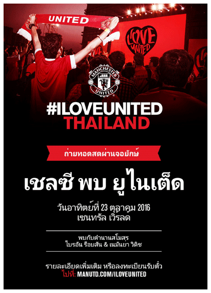 สามารถดูรายละเอียดเพิ่มเติมได้ที่ MANUTD.COM/ILOVEUNITED หรือสามารถร่วมชมคลิปวิดีโอได้ผ่านทางhttps://www.facebook.com/manchesterunited/videos/10154098839887746/