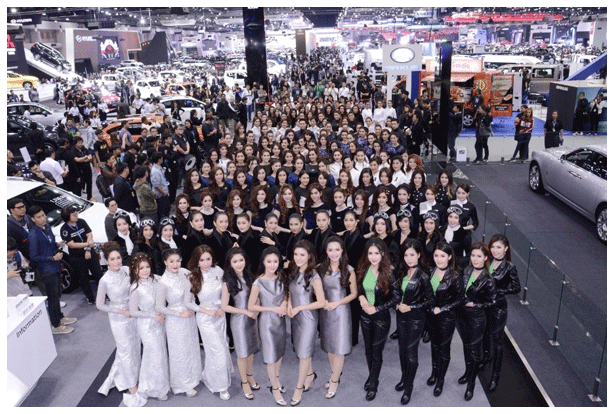 .......ขวัญชัย ปภัสร์พงษ์ ประธานจัดงาน "มหกรรมยานยนต์ ครั้งที่ 33" เปิดเผยว่า "ผมรู้สึกภาคภูมิใจและขอขอบคุณทุกคำชมเชยเกี่ยวกับการจัดงาน โดยเฉพาะ พลเอก ประยุทธ์ จันทร์โอชา นายกรัฐมนตรี ที่กล่าวว่า งานนี้แสดงถึงศักยภาพของอุตสาหกรรมยานยนต์ไทยในการเป็นศูนย์กลางการผลิตยานยนต์ของอาเซียน และช่วยขับเคลื่อนเศรษฐกิจของประเทศ พร้อมทั้งชื่นชมการแต่งกายของพริททีในงาน มีความเรียบหรู สวยสง่า เหมาะสมกับสถานการณ์บ้านเมืองและวัฒนธรรมที่งดงามของไทย" ......."นอกจากนี้ กระทรวงวัฒนธรรมยังมีหนังสือขอบคุณและชื่นชมบริษัท สื่อสากล จำกัด ที่เอาใจใส่กวดขันการแต่งกายของพริททีในงาน ให้เหมาะสมกับสถานการณ์บ้านเมืองเช่นเดียวกัน ซึ่งคำชมดังกล่าวผมขอส่งต่อให้ผู้ร่วมจัดแสดงที่ให้ความร่วมมือในเรื่องนี้อย่างเต็มที่" .......ด้านยอดจองรถในงานปีนี้มีตัวเลขเป็นที่น่าพอใจ โดยเฉพาะรถจักรยานยนต์ สร้างสถิติใหม่ด้วยยอดจองสูงถึง 7,942 คัน สูงกว่าเป้าที่ตั้งไว้ถึง 98.6 % อันดับ 1 ได้แก่ GPX 1,109 คัน อันดับ 2 VESPA 1,059 คัน อันดับ 3 YAMAHA 1,040 คัน อันดับ 4 HONDA 791 คัน และ อันดับ 5 STALLIONS 722 คัน |
