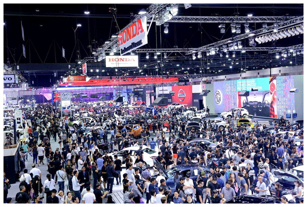 .......ส่วนรถยนต์ทั่วไป 5 อันดับยอดจองสูงสุด ได้แก่ อันดับ 1 TOYOTA 5,124 คัน อันดับ 2 HONDA 4,902 คัน อันดับ 3 ISUZU 3,620 คัน อันดับ 4 MAZDA 3,434 คัน และอันดับ 5 FORD 2,441 คัน .......ด้านราคาเฉลี่ยรถที่ขายได้ในงานปรับเพิ่มขึ้นเป็น 1,177,393 บาท เนื่องจากปีนี้ผู้บริโภคให้ความสนใจรถเก๋งหรู รถเอสยูวี และรถกระบะ เพิ่มมากขึ้น ทำให้เงินหมุนเวียนภายในงานปีนี้อยู่ที่ 45,000 ล้านบาท ผู้เข้าชมงานจำนวน 1,191,718 คน ลดลง 19.3% |
