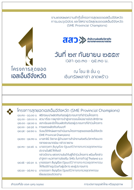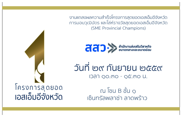 21 กันยายน 2559- สำนักงานส่งเสริมวิสาหกิจขนาดกลางและขนาดย่อม (สสว.)