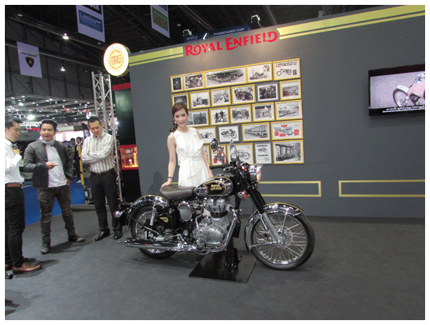 Highlight on integrated aftersales services made accessible to riders ........Bangkok, March 22, 2016: Royal Enfield, the fastest growing motorcycle brand in the world, after successfully launching its first retail operations in Thailand, is ready to showcase its complete finest range of classic British motorcycles and Gear range to cater to mid-size motorcycle lovers at 37th Bangkok International Motor Show. ........Following the announcement of its first entry into Thailand and a view to become the leader in global mid-sized motorcycle segment (250-750 cc), Royal Enfield launched its first exclusive brand store with authorized dealership and integrated service center in Thailand in Sukhumvit 55 Road (opposite Thonglor 23). The positive feedback has been widely received, especially from specific riders demographic. In the brand store, the full range of Royal Enfield motorcycles are displayed including the Continental GT 535cc caf? racer, the Classic Chrome and Classic 500, Royal Enfield's retro street model, known for its post war, timeless styling, and the Bullet, world's oldest motorcycle in continuous production since 1932. |