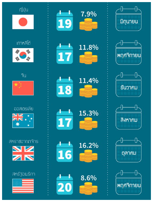 10 จุดหมายปลายทางยอดนิยมของ นักเดินทางชาวไทย ประเทศ จำนวนสัปดาห์ที่ควรจองล่วงหน้าเพื่อตั๋วราคาถูกที่สุด