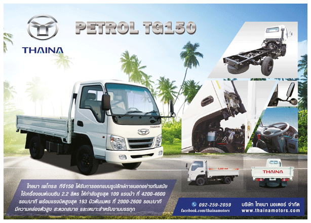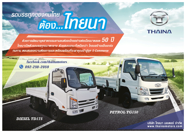 ........มร. พอล เอม มาร์คแฮม ผู้จัดการฝ่ายการตลาด บริษัท ไทยนา มอเตอร์ จำกัด เปิดเผยว่า "บริษัทฯ พร้อมเปิดตัวรถบรรทุกขนาดกลาง 4 ล้อ ยี่ห้อ "ไทยนา" 2 รุ่นเพื่อทำตลาดในประเทศไทย ได้แก่ ไทยนา เพโทรล ทีจี150 (Thaina Petrol TG150) เครื่องยนต์เบนซิน 2.2 ลิตร และ ไทยนา ดีเซลทีดี175(Thaina Diesel TD175) เครื่องยนต์ดีเซล 2.8 ลิตร ในงานมอเตอร์เอ็กซ์โป ระหว่างวันที่1-12 ธันวาคม 2016 นี้ ........สำหรับรถบรรทุก 4 ล้อขนาดกลางไทยนา เป็นความร่วมมือระหว่างนักธุรกิจไทยและนักธุรกิจต่างชาติ จัดตั้งบริษัท ไทยนา มอเตอร์ จำกัด ด้วยทุนจดทะเบียน 5 ล้านบาท และจะขยายการลงทุนอีกราวๆ 26 ล้านบาท โดยมีโรงงานผลิตอยู่ที่นิคมอุตสาหกรรมเหมราชจังหวัดระยอง ผลิตเพื่อจำหน่ายทั้งในประเทศและส่งออก ขณะที่ชิ้นส่วนอะไหล่มีทั้งนำเข้าจากต่างประเทศ และนำเข้ามาปรับปรุงให้เหมาะสมกับตลาดไทย โดยปัจจุบันมีชิ้นส่วนอะไหล่ในประเทศ 40% และในอนาตคจะใช้ชิ้นส่วนในประเทศเพิ่มขึ้นอีกกว่า 45% |