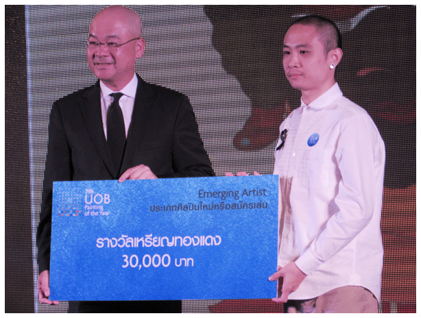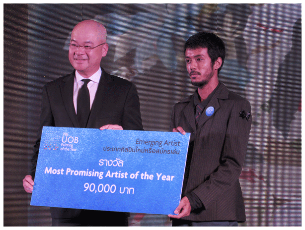 - หม่อมหลวงปนัดดา ดิศกุล รัฐมนตรีประจำสำนักนายกรัฐมนตรี เป็นประธานมอบรางวัล - คุณปีเตอร์ ฟู กรรมการผู้จัดการใหญ่ ธนาคารยูโอบี และคณะกรรมการตัดสิน ได้แก่ - อ.อำมฤต ชูสวรรณ คณบดีคณะจิตรกรรมประติมากรรมและภาพพิมพ์ ม.ศิลปากร - ศ.เกียรติคุณ ดร.สันติ เล็กสุขุม ภาควิชาประวัติศาสตร์ศิลปะ คณะโบราณคดี ม.ศิลปากร - นายฉัตรวิชัย พรหมทัตตเวที กรรมการและเลขานุการมูลนิธิหอศิลปวัฒนธรรมแห่งกรุงเทพฯ |