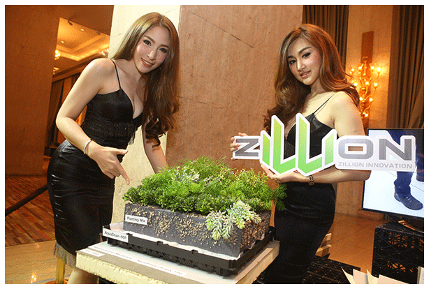 | ........โดยครั้งนี้นอกจากจะได้เปิดเผยถึงความร่วมมือระหว่างสองบริษัทแล้ว ยังเป็นการเปิดตัวนวัตกรรม "สวนแนวตั้งกรีนวอลล์" ที่ได้รับการรองรับในระดับสากลแก่ผู้สนใจที่อยู่ในแวดวงการออกแบบ และสถาปนิกอีกด้วย โดยวัสดุสวนแนวตั้ง หรือ Green wall ของซิลเลี่ยน อินโนเวชั่นแบ่งเป็น 2 ประเภท คือ (1) แบบแผ่น เหมาะกับงานที่มีพื้นที่จำกัด และงานที่ต้องการสร้างลวดลายที่สวยงาม มาพร้อมกับแผ่นแร่ธาตุในตัว และ(2) แบบกระถางที่มีระบบเก็บน้ำในตัว สามารถดูแลต้นไม้ได้ง่าย ต้นไม้มีการเจริญเติบโตได้ดี ชูจุดเด่นที่ถือเป็นนวัตกรรมก็คือการจ่ายน้ำอัตโนมัติให้กับสวนแนวตั้งจากอเมริกา ที่สามารถควบคุมผ่านระบบสัญญาณดาวเทียม และตรวจสอบระบบได้ real time นอกจากนี้วัสดุอุปกรณ์ รวมทั้งการดำเนินการติดตั้งยังผ่านการตรวจสอบมาตรฐานจาก American Society of Testing ทำให้มั่นใจได้ว่าผลิตภัณฑ์มีความแข็งแรง ทนทานต่อสภาพอากาศ และลมแรง และยังมีบริการทีมงานคุณภาพเข้าไปศึกษา วิเคราะห์หน้างานให้กับลูกค้า ก่อนจะเสนอราคาในการออกแบบติดตั้งโดยไม่คิดค่าใช้จ่าย | |