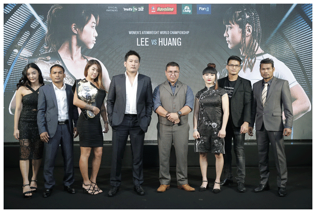 ........โดยมีนายชาตรี ศิษย์ยอดธง ประธานบริษัท วัน แชมเปี้ยนชิพ และ นายสุกี้-กมล สุโกศล แคลปป์ ประธานบริษัท วัน แชมเปี้ยนชิพ ประเทศไทยเป็นประธานในงานแถลงข่าวร่วมดัวยทัพนักสู้นานาชาติชื่อดังที่จะเข้าร่วมการแข่งขันในครั้งนี้ นายชาตรี ศิษย์ยอดธง ประธานบริษัท วัน แชมเปี้ยนชิพ กล่าวว่า "ศึก ONE: Warrior Kingdom จะเป็นงานอีเวนท์ใหญ่ที่สุดในประวัติศาสตร์ของแวดวงศิลปะกีฬาต่อสู้ของประเทศไทย โดยมีนักสู้ระดับซุปเปอร์สตาร์ของเอเชียอย่าง แองเจล่า ลีที่จะมาป้องกันตำแหน่งแชมป์ครั้งแรกของเธอที่กรุงเทพฯ กับ เจนนี่ ฮวงนักสู้สาวชาวไต้หวันพร้อมด้วยคู่รักแห่งวงการชานนท์ วิรัตน์ชัย และ ริกะ อิชิเกะลูกครึ่งไทย ญี่ปุ่นที่จะเปิดตัวบนสังเวียนอาชีพครั้งแรก ซึ่งในวันที่ 11 มีนาคมนี้" |