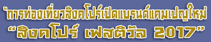 การท่องเที่ยวสิงคโปร์ เตรียมเปิดตัวแบรนด์แคมเปญใหม่ พร้อมขนกิจกรรม สิทธิพิเศษ และโปรโมชั่นเด็ดมากมาย ที่งาน "การท่องเที่ยวสิงคโปร์เปิดแบรนด์แคมเปญใหม่ (สิงคโปร์ เฟสติวัล 2017) |