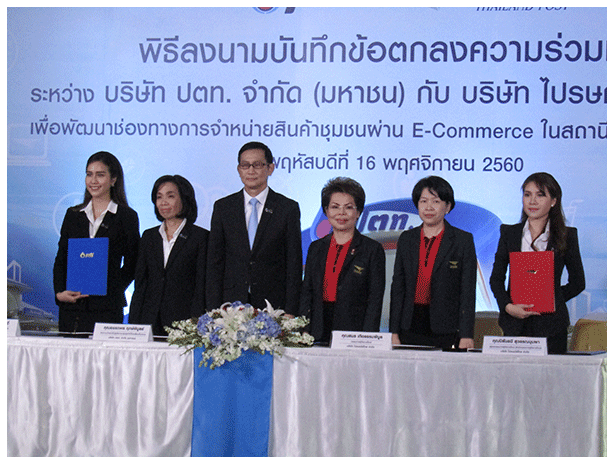 บริษัท ไปรษณีย์ไทย จำกัด และ บริษัท ปตท. จำกัด (มหาชน) ร่วมลงนามในพิธีบันทึกข้อตกลงในการพัฒนาช่องทางการจำหน่ายสินค้าชุมชน