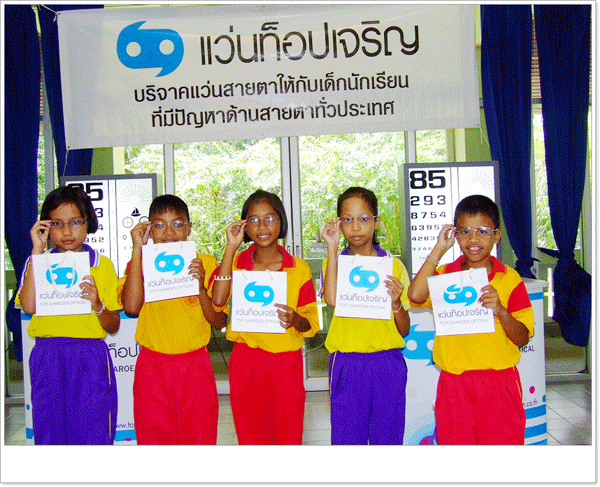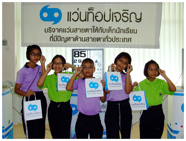 | ........Mr. Noppasak Treeponchaisak, Managing Director of Top Charoen Optical, said, "H.R.H. Princess Maha Chakri Sirindhorn, The Thai Red Cross Children Home's Board of Directors, recognizes the problems of needy people in remote areas, and the importance of efficient education, particularly among children who are the future of the country. Top Charoen Optical and the Thai Red Cross Children's Home would like to offer help to needy children with eyesight problems nationwide in the "Spectacles for Children", which is now in its fourth year." | |