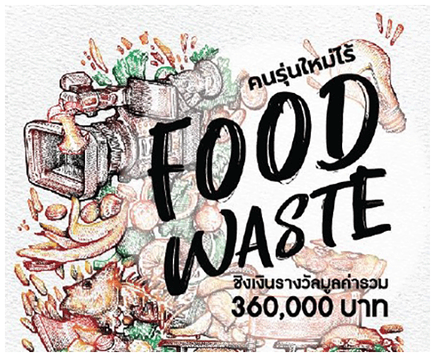 | ........โครงการประกวดคลิปวิดีโอภายใต้หัวข้อ "คนรุ่นใหม่ไร้ Food Waste" เปิดรับสมัครนักเรียน นักศึกษาทั่วประเทศ เข้าร่วมกิจกรรม ตั้งแต่ 1 พฤศจิกายน 2561 - 31 มกราคม 2562 ผู้สนใจเข้าร่วมส่งผลงานและติดตามรายละเอียดการสมัครได้ที่ http://www.facebook.com/คนรุ่นใหม่ไร้-FOOD-WASTE-176231446618254 | |
