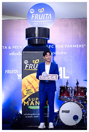 ฟรุตต้า เนเชอรัล โดย นายรักชัย เร่งสมบูรณ์ จัดงาน"FRUITA & PECK PALITCHOKE FC FOR FARMERS" ภายใต้คอนเซ็ปต์ "You're REAL" ........ชูจุดเด่นของสินค้าในการนำผลไม้สดแท้มาทำเป็นสมูทตี้ผลไม้ 100% เป็นรายแรกของไทย โดยภายในงานจัดเต็มด้วยกิจกรรมมากมาย ทั้งเวิร์คช็อปทำขนมเพื่อสุขภาพและม็อลเทลจากสินค้าฟรุตต้า ก่อนเปิดตัวและพูดคุยกับ 'เป๊ก ผลิตโชค' ในฐานะพรีเซนเตอร์ระดับเอเชีย คนแรกของแบรนด์ พร้อมชวนแฟนคลับเล่นเกมบนเวทีสุดเอ็กคลูซีฟ ปิดท้ายด้วยมินิคอนเสิร์ตจัดเต็มที่เหล่านุชๆ ของหนุ่มเป๊กร้องตามกันอย่างสุดเสียงแถมยังแอบทำเซอร์ไพรส์กลับโดยการหอบเค้กออกมาพร้อมร้องเพลงแฮปปี้เบิร์ดเดย์เจ้าตัวย้อนหลังด้วย |