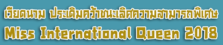 ........สำหรับการประกวดรอบตัดสินจะมีขึ้นในวันที่ 9 มีนาคม ณ โรงละครทิฟฟานี่โชว์ พัทยา สามารถชมการถ่ายทอดการประกวด "Miss International Queen 2018" ผ่านทางช่อง GMM25, LIVE Streaming ทาง www.gmm25.com, Application GMM25 และ Live Facebook ใน GMM25 Facebook Fanpage หรือ www.facebook.com/MissInternationalQueen และwww.MissInternationalQueen.com ตั่งแต่เวลา 22.00 |