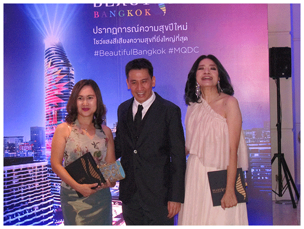........โดยมีไฮไลต์สำคัญคือการแสดงแสงสีเสียง บนตึกสูง 60 ชั้น ถ่ายทอดความคิดสร้างสรรค์ ผสานเทคโนโลยี นำเสนอผลงาน 7 ศิลปินไทยชั้นนำ พร้อมกันนี้ เราขอขอบคุณพี่น้องคนไทยที่ได้ร่วมสนุก โดยร่วมเป็นส่วนหนึ่งในการสร้างความสมบูรณ์แบบให้กับการแสดงแสงสีเสียงตลอดช่วงเทศกาลแห่งความสุขนี้ และนี่จะเป็นครั้งแรกในประเทศไทยที่จะฉายภาพรอยยิ้มแห่งความสุขจากคนทางบ้านจริงๆ โดยจะฉายขึ้นตึกทุกวัน รวมกว่า 250 ภาพ ซึ่งช่วยเพิ่มสีสันให้กับการแสดงมากขึ้นอีกด้วย เพื่อมอบความสุขให้กับคนไทยและนักท่องเที่ยว ต้อนรับเทศกาลแห่งความสุขที่กำลังจะมาถึงนี้ โดยการแสดงจะมีทุกคืน เริ่มตั้งแต่คืนนี้ ไปจนถึงคืนวันสิ้นปี 31 ธันวาคมนี้" ........ขณะที่ กรกฎ ศรีวิกรม์ ในนามตัวแทนสมาคมผู้ประกอบวิสาหกิจในย่านราชประสงค์ หรือ RSTA กล่าวว่า "โครงการ แมกโนเลียส์ ราชดำริ บูเลอวาร์ด (MRB) ภายใต้การบริหารของกลุ่มแมกโนเลียฯ (MQDC) ซึ่งตั้งแต่ได้ร่วมผนึกกำลังเป็นพันธมิตรกับสมาคมฯ ก็ได้เข้ามาช่วยเติมเต็มทัศนียภาพอันงดงามของย่านราชประสงค์-ย่านราชดำริ และยังเป็นส่วนหนึ่งที่สำคัญที่ช่วยตอกย้ำ ให้ที่แห่งนี้กลายเป็นแลนด์มาร์กแห่งใหม่ นำไปสู่ก้าวสำคัญของการพัฒนา ย่านราชประสงค์ให้เป็นเมืองแห่งอนาคต ที่รวมความเป็นที่สุดแห่งตลาดรีเทล ตลาดโฮลเซล ตลาดฮอสพิทอลลิตี้ ตลาดลักชัวรี่ เรสซิเดนส์ และตลาดไมซ์ใจกลางกรุงเทพฯ เพื่อหนุนเสริมให้ย่านราชประสงค์แข็งแรง พร้อมเป็นศูนย์กลางเวทีเศรษฐกิจระดับโลก การจัดงาน 'Beautiful Bangkok @Magnolias Ratchadamri Boulevard' ในครั้งนี้ เชื่อว่าผู้มาชมงาน จะได้สัมผัสความตื่นตาตื่นใจ อิ่มสุข อิ่มใจ และภาคภูมิใจ ในความเป็นไทย และเราเชื่อว่า จะสามารถดึงดูดความสนใจจากนักท่องเที่ยวจำนวนมากในช่วงเทศกาลคริสต์มาสและปีใหม่นี้ เพื่อเสริมความแข็งแกร่งให้ราชประสงค์กลายเป็นจุดหมายปลายทางการเคาต์ดาวน์ ทำให้กรุงเทพฯ เป็นหนึ่งใน Global Countdown Destination ระดับโลก" ........ด้าน อิทธิพล คุณปลื้ม ผู้ช่วยรัฐมนตรีประจำกระทรวงการท่องเที่ยวและกีฬา กล่าวว่า "โอกาสนี้ขอเชิญชวนคนไทยทุกคนร่วมกันทำหน้าที่เป็นเจ้าภาพต้อนรับนักท่องเที่ยวร่วมกัน ภายใต้ความสวยงามของสถานที่ต่างๆ ที่มีการจัดกิจกรรมประดับไฟแสงสีเสียงเพื่อสนับสนุนนโยบายรัฐบาลด้านการส่งเสริมการท่องเที่ยวของประเทศ และส่งเสริมภาพลักษณ์กรุงเทพมหานคร ในฐานะมหานครแห่งการท่องเที่ยวชั้นนำระดับโลก การจัดแสดงแสง "บิวตี้ฟูล แบงค็อก แอท แมกโนเลียส์ ราชดำริ บูเลอวาร์ด" ที่ต้องการสื่อสารจุดเด่นของกรุงเทพฯ ทั้งในด้านของวัฒนธรรม และอั