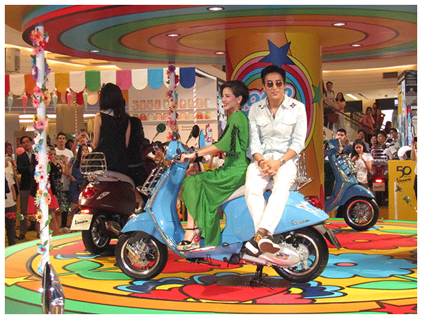 ........บริษัท เวสปิอาริโอ (ประเทศไทย) ผู้นำเข้าและจัดจำหน่ายรถพรีเมี่ยมสกู๊ตเตอร์ชั้นนำ "พิอาจิโอ" และ "เวสป้า" พร้อมทั้งมอเตอร์ไซค์ระดับตำนาน "อาพริเลีย" และ "โมโต กุซซี่" สัญชาติอิตาเลี่ยนแต่เพียงผู้เดียวในประเทศไทย เผยโฉมเป็นครั้งแรกในไทยกับ Vespa Primavera 50th Anniversary Edition อิดิชั่นพิเศษที่ผลิตขึ้นในจำนวนจำกัด เพื่อเฉลิมฉลองในโอกาสครบรอบ 50 ปีอย่างยิ่งใหญ่ของเวสป้า พรีมาเวร่า โดยได้เนรมิตพื้นที่ความสนุกสุดคลาสสิกเต็มไปด้วยกลิ่นอายแห่งยุค '60s ในงาน Vespa Primavera Wonderland อย่างยิ่งใหญ่เป็นเวลา 3 วันเต็มๆ |