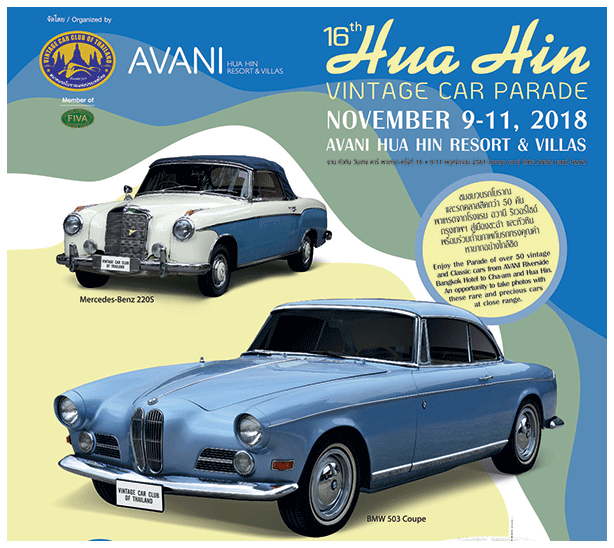 "หัวหิน วินเทจคาร์ พาเหรด ครั้งที่ 16" จากโรงแรมอวานี ริเวอร์ไซด์
