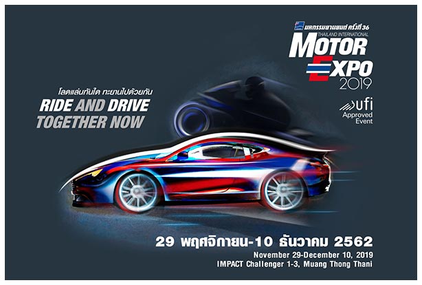 และอินโดนีเซีย มาเปิดเวทีเจรจาการค้า รวมถึงร่วมสัมมนาในหัวข้อที่น่าสนใจมากมาย ........ประธานจัดงาน "มหกรรมยานยนต์ ครั้งที่ 36" คาดว่าจะมียอดจองรถยนต์ในงาน 50,000 คัน รถจักรยานยนต์ 9,000 คัน และผู้ชมงาน 1.6 ล้านคน สร้างเม็ดเงินสะพัดในงานกว่า 56,000 ล้านบาท และหวังว่าจะส่งผลให้ยอดขายรถยนต์ในไทยปีนี้เติบโตเพิ่มขึ้น 5 % เมื่อเทียบกับปีที่ผ่านมา "มหกรรมยานยนต์ ครั้งที่ 36" จัดขึ้น ณ อาคารชาลเลนเจอร์ IMPACT เมืองทองธานี ระหว่างวันที่ 29 พฤศจิกายน-10 ธันวาคม 2562 ติดตามรายละเอียดเพิ่มเติมได้ที่ motorexpo.co.th | |