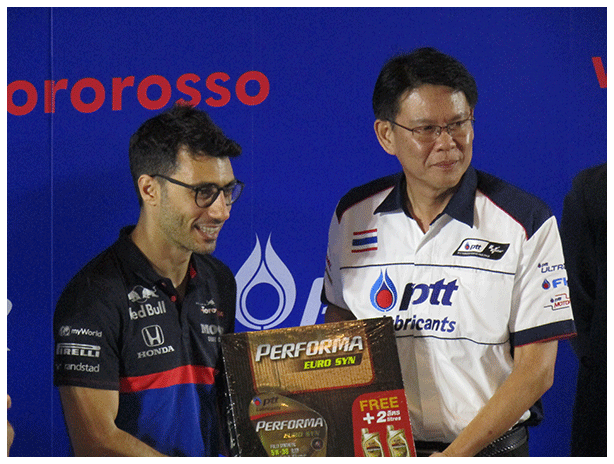 ![]() | ........การแข่งขัน เอฟ วัน เป็นหนึ่งในรายการสำคัญที่ชาวมอเตอร์สปอร์ตทั่วโลกให้ความสนใจ โดย โออาร์ หวังว่าการสนับสนุนในครั้งนี้จะเปิดโอกาสให้นักกีฬามอเตอร์สปอร์ตไทยได้แสดงศักยภาพและความสามารถในเวทีการแข่งขันระดับโลก สร้างชื่อเสียงให้กับประเทศไทย รวมทั้งสร้างความเชื่อมั่นในคุณภาพของผลิตภัณฑ์น้ำมันหล่อลื่นของไทย พีทีที ลูบริแคนท์ส ให้ปรากฏต่อสายตาของแฟนกีฬามอเตอร์สปอร์ตจากทั่วทุกมุมโลก |