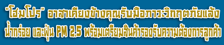 มากกว่าปกติ อย่างช่วงเวลานี้ ........"การรับมือกับปัญหาวิกฤติทั้ง 3 ของโฮมโปร ทั้งภัยแล้ง น้ำกร่อย และฝุ่น PM 2.5 ไม่ได้มีแค่การเตรียมการด้านสินค้าเท่านั้น เพราะโฮมโปรใส่ใจในหัวข้อของการให้บริการเช่นกัน ซึ่งบริษัทได้เพิ่มประสิทธิภาพการบริการ และขยายช่องทางให้อยู่ใกล้ลูกค้ามากที่สุด อาทิ บริการจากทีม Home Service ทีมช่างมืออาชีพที่เตรียมพร้อมในการซ่อมแซม-ดูแล อุปกรณ์เครื่องใช้ในอยู่ในสภาพพร้อมที่สุด, บริการ Click & Collect ช้อปสินค้าออนไลน์ พร้อมเลือกกำหนดช่วงเวลาและสาขาในการรับสินค้าได้เอง, บริการส่งฟรีทั่วไทย ในวันเดียว (Same Day Delivery) รวมถึงบริการติดตั้งฟรี การันตีด้วยทีมช่างมืออาชีพ ให้ลูกค้าสามารถเข้าถึงสินค้า พร้อมรับมือกับวิกฤตได้ตลอด 24 ชั่วโมง, สโตร์ที่ครอบคลุมทุกสาขาทั่วประเทศ รวมถึงการช้อปผ่านช่องทางออนไลน์ที่เข้าถึงง่าย และสะดวกรวดเร็วกว่า ให้คนรักบ้านมั่นใจได้ว่า โฮมโปร พร้อมฝ่าวิกฤติภัยแล้งนี้ไปพร้อมกับทุกคน" นางสาวสันนิภา กล่าวทิ้งท้าย ........ร่วมฝ่าวิกฤติการณ์ครั้งนี้ กับ โฮมโปร ด้วยโปรโมชั่นคืนกำไรมากมาย อาทิ ผลิตภัณฑ์เครื่องสูบน้ำ และอุปกรณ์กักเก็บน้ำ แท้งค์น้ำ และเครื่องฟอกอากาศ ลดราคาพิเศษ และเมื่อซื้อสินค้าวันนี้ รับบริการติดตั้งฟรี ภายในวัน ทันที พิเศษ!! สำหรับลูกค้า บัตรเครดิตโฮมโปร วีซ่า แพลทินัม รับส่วนลดเพิ่มอีก 3% และรับสิทธิ์ผ่อน 0 % นานสูงสุดถึง 10 เดือน พร้อมให้สิทธิ์คุณปกป้องคนในครอบครัว จากฝุ่นละอองก่อนใคร เมื่อช้อปเครื่องฟอกอากาศ ครบตั้งแต่ 6,000 บาทขึ้นไป รับฟรี!! พัดลมพกพา COCORU ขนาด 7 นิ้ว ตั้งแต่วันที่ 4-29 มกราคม 63 นี้ สอบถามรายละเอียดเพิ่มเติม ที่โฮมโปร ทุกสาขา หรือช้อปโฮมโปรออนไลน์ได้ที่ www.homepro.com | |