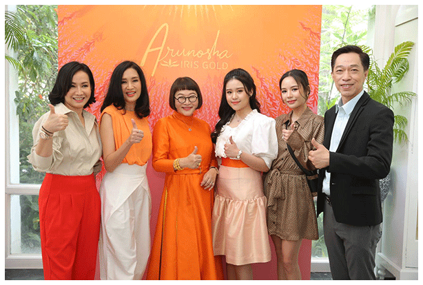 | ........บรรยายภาพ: อรุโณชา ภาณุพันธุ์ (ตรงกลาง) ผู้จัดละครหญิงเก่งยืนหนึ่งของเมืองไทย จับมือกับไอริส โกลด์ จัดงานแถลงข่าวเปิดตัว "The Sun Collection" คอลเลกชันเครื่องประดับแรกภายใต้แบรนด์ "Arunosha x IrisGold โดยมีพันธมิตรทางธุรกิจร่วมแสดงความยินดีกันอย่างคับคั่ง ณ อะกาลิโก เมื่อวันก่อน | |
