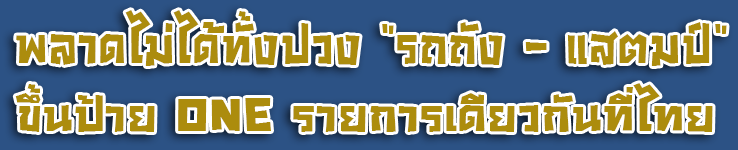| พลาดไม่ได้ทั้งปวง "รถถัง - แสตมป์" ขึ้นป้าย ONE รายการเดียวกันที่ไทย | |
