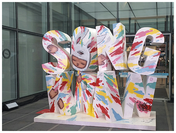 Sculpture ของเนะชิ้นนี้ชื่อว่า "Splash Love To Life" โดยได้รับแรงบันดาลใจมาจากการที่เนะอยากกระจายความสุขผ่านสีสันต่างๆ