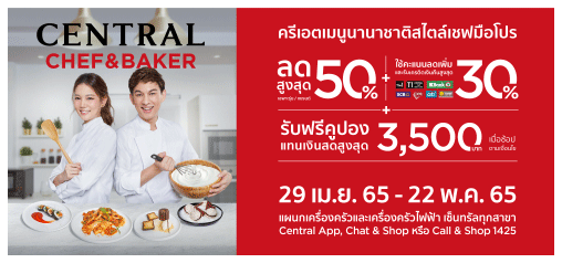 ........อาทิ PHILIPS, TEFAL, KENWOOD, DELONGHI, ELECTROLUX, CUIZIMATE, LE CREUSET, ZEBRA, ZWILLING, BRABANTIA, TANITA, ANOLON, JOSEPH JOSEPH และอื่นๆ อีกมากมายรวมกว่า 200 แบรนด์ พร้อมจัดโปรโมชั่นสุดเอ็กซ์คลูซีฟ ที่ห้างเซ็นทรัล ทุกสาขา ระหว่างวันที่ 29 เม.ย. 65 - 22 พ.ค. 65 นอกจากนี้ ยังชวนเหล่าคุกกิ้งเลิฟเวอร์ ร่วมชมไลฟ์กิจกรรมพิเศษ "CENTRAL CHEF CHALLENGE" ด้วยการครีเอตเมนูนานาชาติสุดพิเศษ ผ่านฝีมือของเชฟมือทองและคนดังที่รักการทำอาหาร ส่งตรงความอร่อยจากแผนกโฮม ชั้น 5 ห้างเซ็นทรัลลาดพร้าว และรับชมผ่านทาง Facebook Page : Central Department Store ได้ดังนี้ |